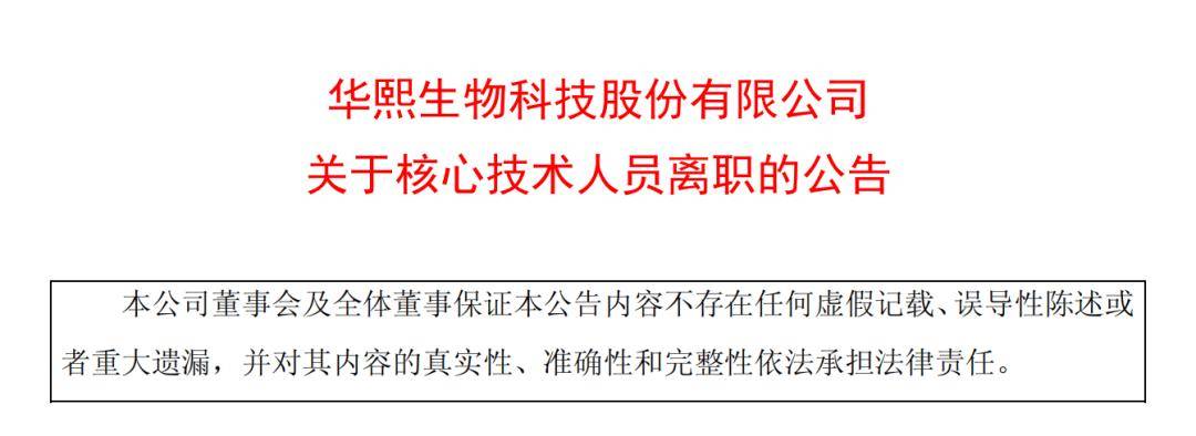 2月7日,华熙生物科技股份有限公司(以下简称“华熙生物”)发布公告称,核心技术人员周贤龙因个人原因自2026年2月6日起辞去公司职务。