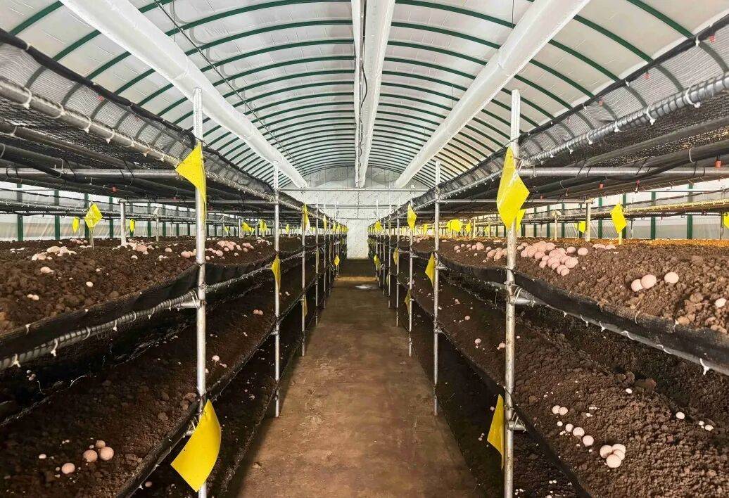 金荪公司联合多所高校研发出立体换土栽培、熟料菌棒脱袋覆土等技术,不仅使生长周期大大缩短,还能反季节种植,市场竞争力进一步提升。