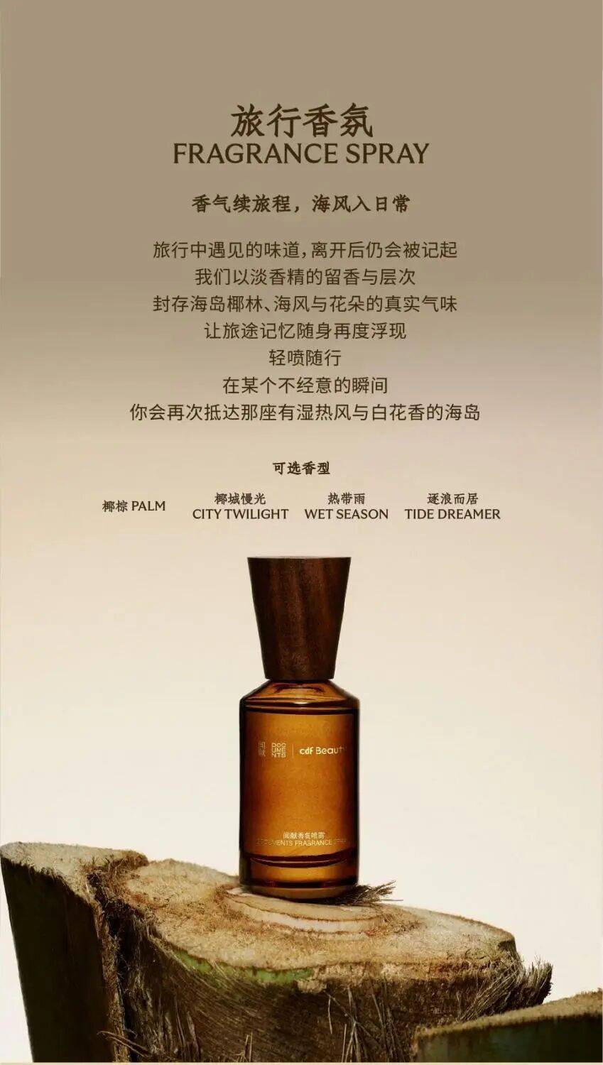 除了面膜产品系列外,cdf Beauty还联名国内高端香氛品牌闻献DOCUMENTS,推出“屿岸寻香”限定旅行香氛系列。值得一提的是,该香氛全系列定价仅为闻献品牌同品类产品的一半,性价比优势显著。